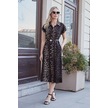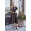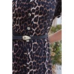 Kadın Desenli Yakalı Düşük Omuzlu Duble Kol Kemerli Midi Boy Elbise Deri Kemer Dahil -leopar Leopar