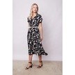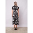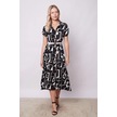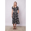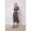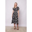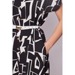 Kadın Desenli Yakalı Düşük Omuzlu Duble Kol Kemerli Midi Boy Elbise Deri Kemer Dahil -siyah Desen Siyah Dsn.