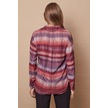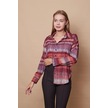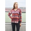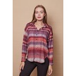 Kadın Desenli Yakalı Düşük Omuzlu Uzun Kol Şık Ofis Gömlek-Kiremit Çizgi Kiremit Çzg.