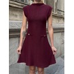 Kadın Dik Yaka Asimetrik Etekli Beli Tokalı Kolsuz Şık Tasarım Elbise Bordo