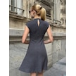 Kadın Dik Yaka Asimetrik Etekli Beli Tokalı Kolsuz Şık Tasarım Elbise Gri