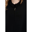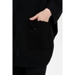 Kadın Dik Yaka Cebi Gül İşlemeli Fermuarlı Kısa Panço Siyah Siyah