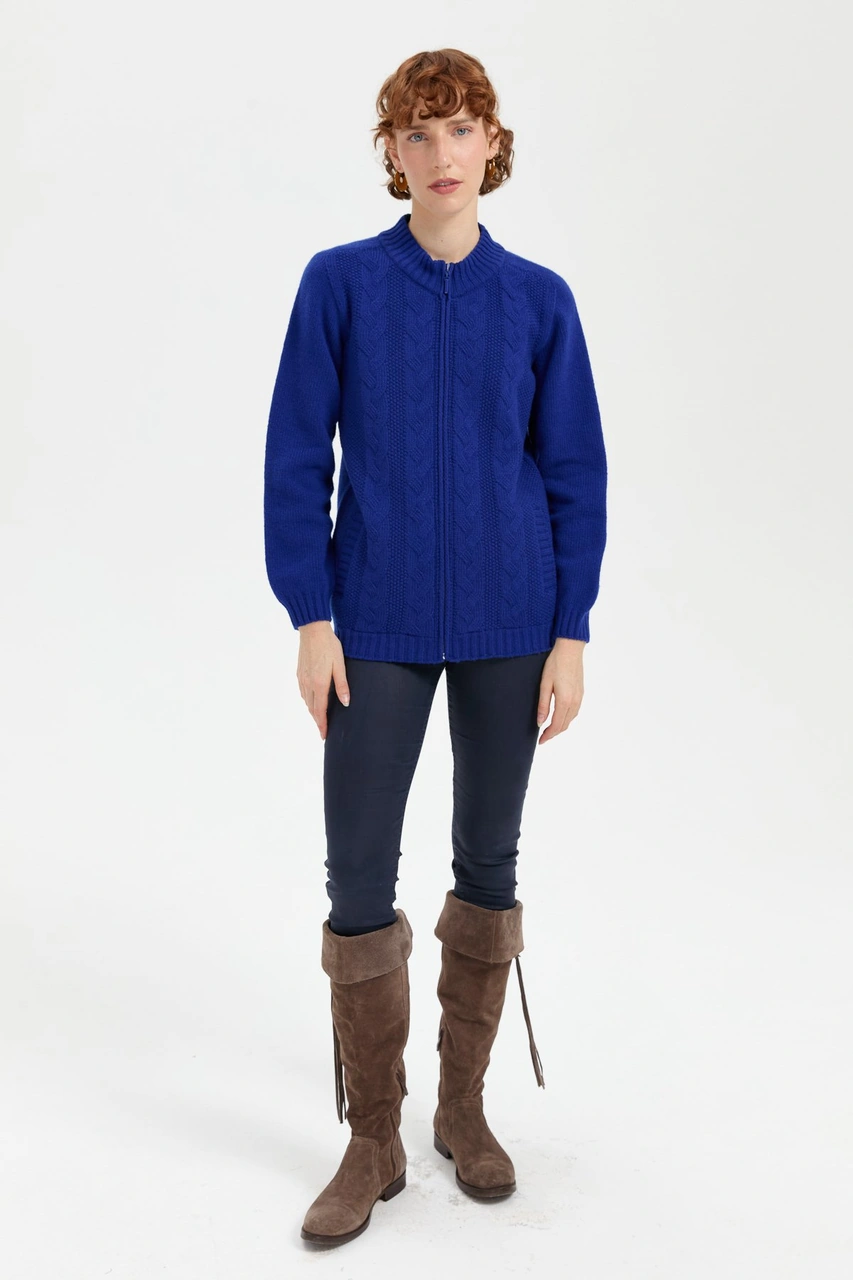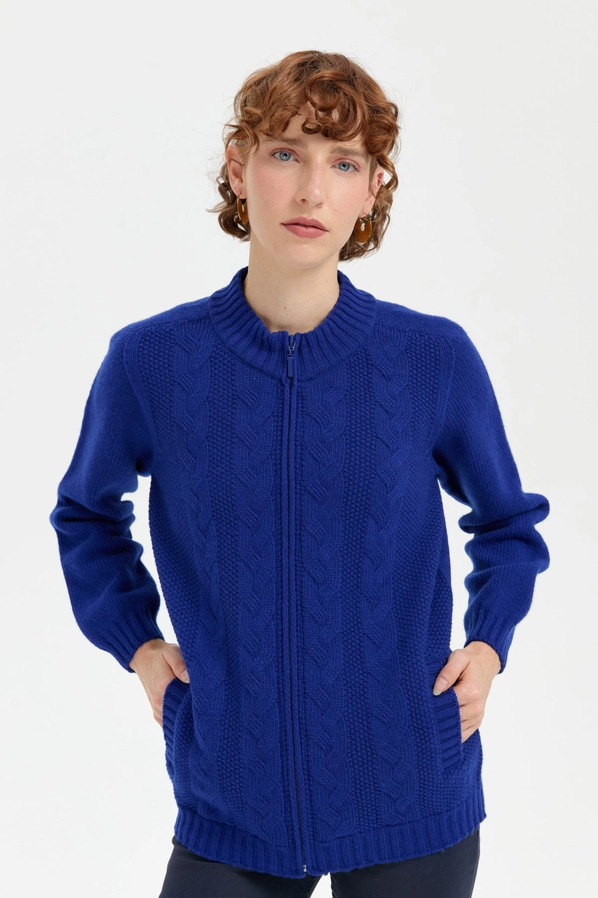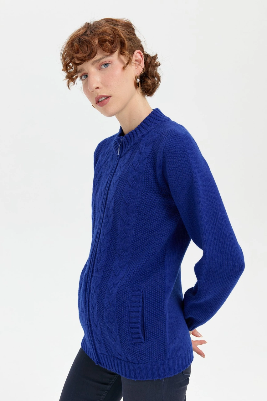 Kadın Dik Yaka Dikişsiz Önü Saç Örgülü Yün Hırka K.s.mavi K.s.mavi