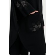 Kadın Dik Yaka Kolu Ve Cebi İşlemeli Panço Siyah Siyah