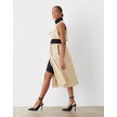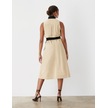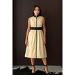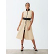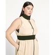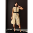 Kadın Dik Yaka Önü Fermuarlı Yırtmaçlı Baharlık Yazlık Beli Lastikli Şık Ceket Elbise Bej
