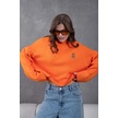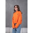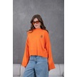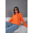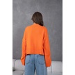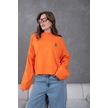 Kadın Dik Yaka Oversize Nakışlı Triko Kazak Turuncu