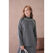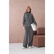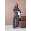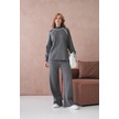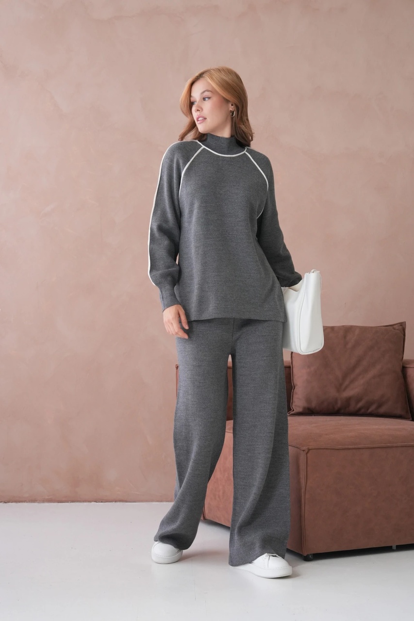 Kadın Dik Yaka Yarım Pat Fermuar Yırtmaçlı Kazak Pantolon İkili Triko Takım Gri
