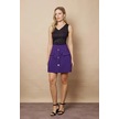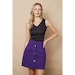 Kadın Diz Üstü Yüksek Bel Önü Düğmeli Cep Kapaklı Hafif Likralı Kumaş Çan Etek-mor Mor