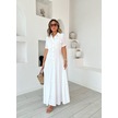Kadın Dokuma Kumaş Cep Detaylı Maxi Boy Gömlek Elbise Beyaz