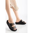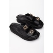 Kadın Dolgu Taban Terlik Siyah 2 Bantlı Suni Deri-3845 Siyah