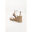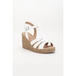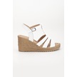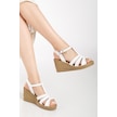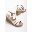 Kadın Dolgu Topuk Sandalet Ayakkabı Beyaz 3 Bantlı Baretli-3938 Beyaz