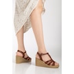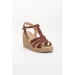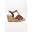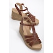 Kadın Dolgu Topuk Sandalet Ayakkabı Taba 3 Bantlı Baretli-3937 Taba
