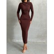 Kadın Drape Detay Uzun Elbise Kahverengi
