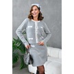Kadın Düğme Detay Etekli İkili Triko Takım Taş
