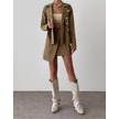 Kadın Düğme Detaylı Hardal Ceket Ve Etek Alt Üst Takım Hardal