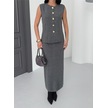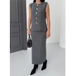 Kadın Düğme Detaylı Yelek Uzun Etek Alt Üst Triko Takım Antrasit