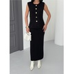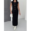 Kadın Düğme Detaylı Yelek Uzun Etek Alt Üst Triko Takım Siyah
