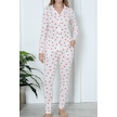 Kadın Düğmeli Pijama Takımı Uzun Kollu Cepli Kalpli Sevgililer Günü Beyaz