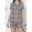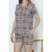 Kadın Düğmeli Şortlu Pijama Takımı Ekoseli Pamuklu Likralı Cepli Mürdüm Nıc1078 R14 Mürdüm