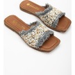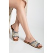 Kadın Düz Topuklu Terlik Gri Taşlı Püsküllü Kalın Tekbant-3924 Gri