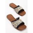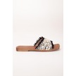Kadın Düz Topuklu Terlik Siyah Taşlı Püsküllü Kalın Tekbant-3922 Siyah
