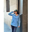 Kadın Ek Parça Kapüşon Kol Arma Detay Gabardin Ceket Mavi