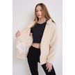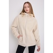 Kadın Ekru Peluş Rüzgar Geçirmez Welsoft Çift Cepli Kapüşonlu Kışlık Mont Ekru