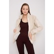 Kadın Ekru Peluş Rüzgar Geçirmez Welsoft Çift Cepli Kışlık Mont Ekru