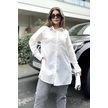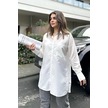 Kadın Ekru Terikoton Kumaş, Yırtmaçlı, Rahat Uzun Gömlek Beyaz