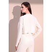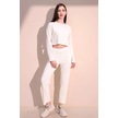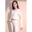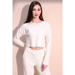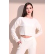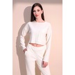 Kadın Ekru Uzun Kol Kendinden Dokulu Cepli Crop Sweatshirt, Salaş Kesim Bluz Ekru
