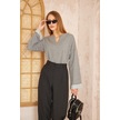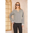 Kadın Ekstra Uzun Duble Kol / Yakası Yırtmaçlı Salaş Sweatshirt Bluz 3470190 Gri