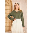 Kadın Ekstra Uzun Duble Kol / Yakası Yırtmaçlı Salaş Sweatshirt Bluz 3470190 Haki