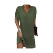 Kadın Elbise V Yaka Pilili Yarım Yarasa Kollu Düz Renk Gevşek Yumuşak Nefes İşe Gidip Diz Üstü Mini Elbise Askeri Yeşil