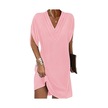 Kadın Elbise V Yaka Pilili Yarım Yarasa Kollu Düz Renk Gevşek Yumuşak Nefes İşe Gidip Diz Üstü Mini Elbise Pembe