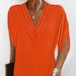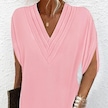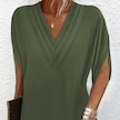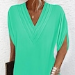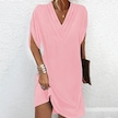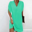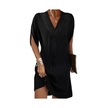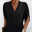 Kadın Elbise V Yaka Pilili Yarım Yarasa Kollu Düz Renk Gevşek Yumuşak Nefes İşe Gidip Diz Üstü Mini Elbise Siyah