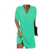 Kadın Elbise V Yaka Pilili Yarım Yarasa Kollu Düz Renk Gevşek Yumuşak Nefes İşe Gidip Diz Üstü Mini Elbise Yeşil