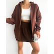 Kadın Fermuarlı Oversize Sweat Hırka Kahverengi