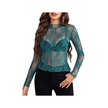 Kadın File Üst Uzun Kollu Balıkçı Yaka Şeffaf Bluz Şeffaf Çiçek Dantel Üstler Yeşil