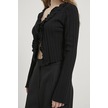 Kadın Fırfır Detaylı Önü Bağcıklı Esnek Pamuk Kısa Fitilli Hırka Siyah