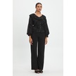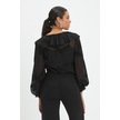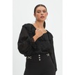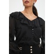Kadın Fırfırlı Çiçek Desenli Gömlek - Volanlı Kol Ve V Yaka Detaylı Siyah