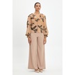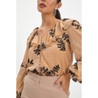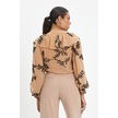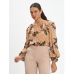 Kadın Fırfırlı Çiçek Desenli Gömlek - Volanlı Kol Ve V Yaka Detaylı Siyah-bej