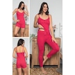 Kadın Fuşya Renkli Dantel Detaylı Şortlu Ve Taytlı Pijama Takımı 3'lü Set 75008 Fuşya