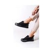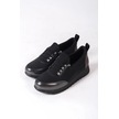 Kadın Galina Siyah Platın Bağcıklı Lastikli Ortopedik Rahat Taban Taş Detaylı Günlük Babet Anne Ayakkabısı-siyah Platin Siyah