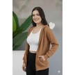 Kadın Genç Unisex Cepli Kapüşonlu Fermuarlı Sweatshirt Hırka Açık Kahve