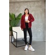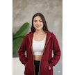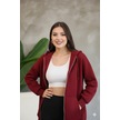 Kadın Genç Unisex Cepli Kapüşonlu Fermuarlı Sweatshirt Hırka Bordo