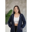 Kadın Genç Unisex Cepli Kapüşonlu Fermuarlı Sweatshirt Hırka Lacivert