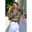 Kadın Gold Parlak Yazılı Dik Yaka Kısa Şişme Mont
