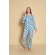 Kadın Gömlek Bulut Desenli Uzun Kol Pijama Takımı Mavi