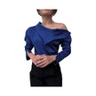 Kadın Gömlek Düğme Eklemeli Balıkçı Yaka Uzun Kollu Rahat Bol Kesim Gömlek Düz Mavi