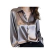 Kadın Gömlek Düz Renk Pürüzsüz Saten Uzun Kollu Yaka Rahat Üstler Tek Göğüslü Fransız Tarzı Ofis Gömlek Gri